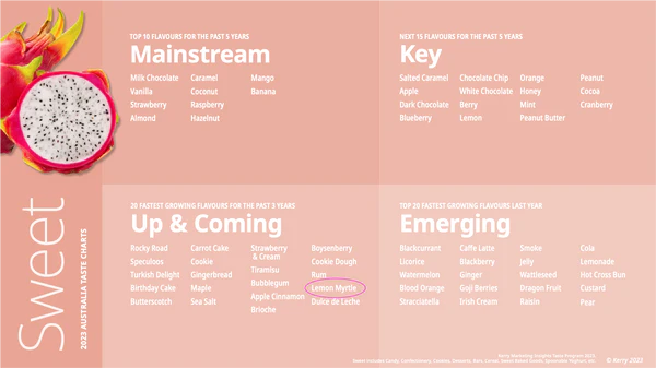 For this category, Lemon Myrtle was listed in the emerging category, as one of the top 20 fastest-growing flavours last year.