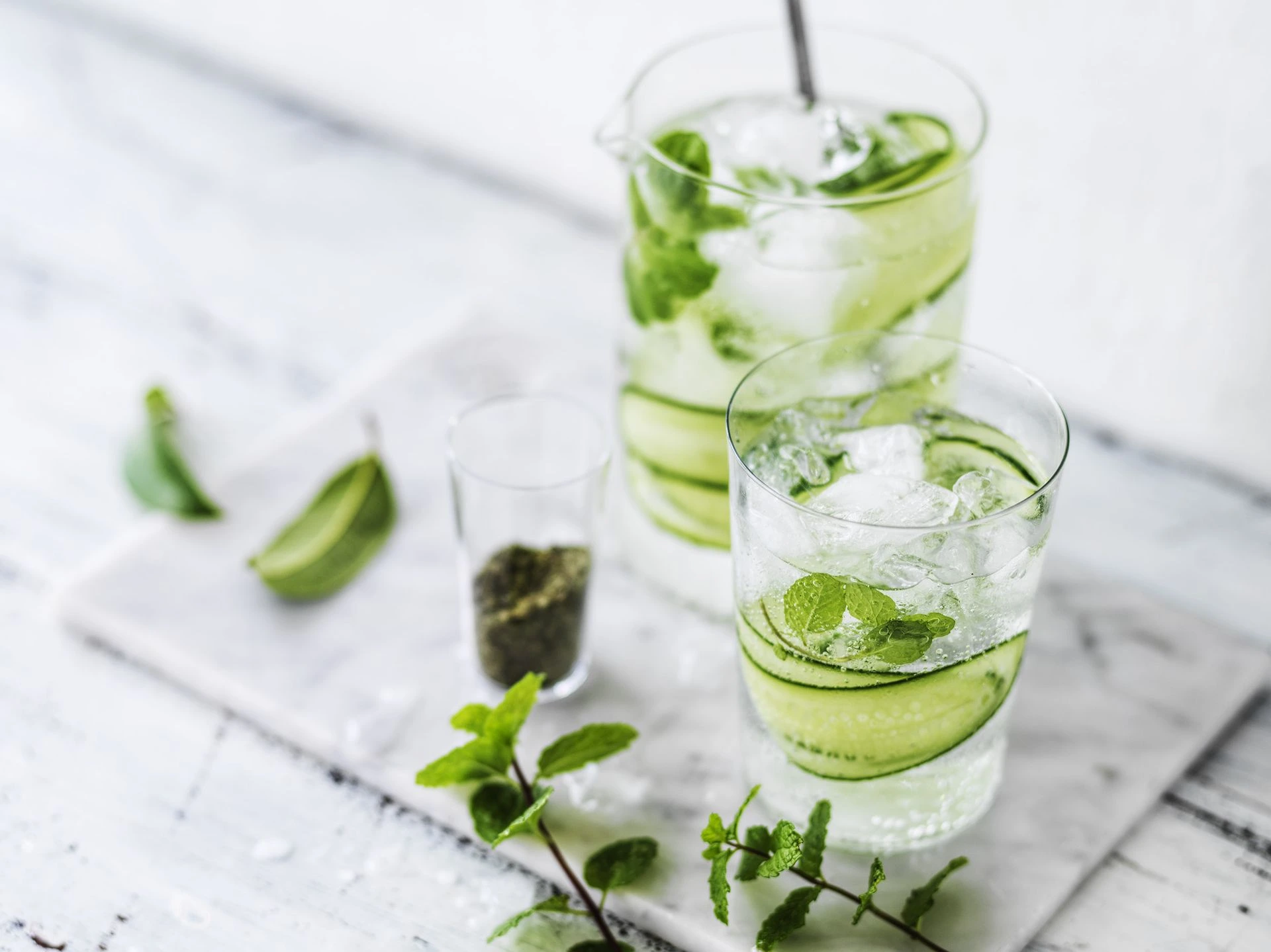 4. Garnish with a cucumber ribbon and fresh Lemon Myrtle leaf, or if you don’t have any, you can use mint